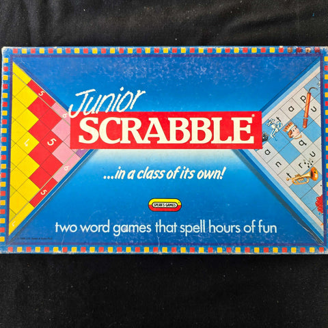 A junior version of Scrabble designed with double-sided boards to grow with children, introducing letters, words, and simple spelling.